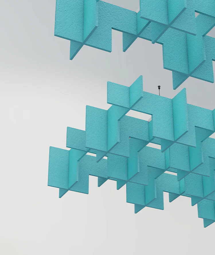 Lattice Clouds bring a bolder, more expressive personality to the ceiling. Crafted with interlocking cuts and geometric layering, these clouds create depth, shadow play, and dynamic patterns overhead. Beyond their striking visual presence, they diffuse and absorb sound across multiple angles, making them as functional as they are sculptural. Designed by our in-house team, Lattice Clouds transform ceilings into design statements — adding character, creativity, and comfort to any space.
